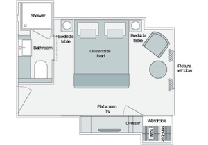 We’ve designed our bathrooms as a relaxing retreat to retire to after an exciting day exploring. Enjoy a sumptuous shower complete with indulgent toiletries, as well as a hairdryer, all before settling into your queen or twin hotel-style bed, complete with luscious linens, as you enjoy a movie on your flat screen TV and infotainment system with, perhaps, a nightcap from your mini-bar.