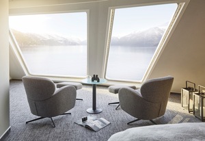 We invite you onboard Havila Voyages' ships with décor that reflects Norwegian landscapes including the sea, the sky, mountains and glaciers.