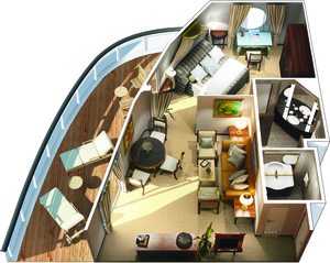With entirely re-designed closets, dressers and vanities, these 165-squarefoot staterooms feel even more spacious. A generous seating area, vanity desk, refrigerated mini-bar and breakfast table are perfectly complemented by the soothing hues and stylish fabrics of the sleek new decor.