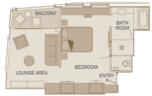 These Suites located on the Diamond Deck are the ultimate in luxury with more space, impeccable service, thoughtful touches, an outdoor balcony, lounge area and an oversized bathroom.