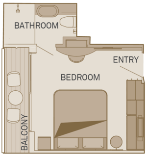 These spacious Suites, located on the Sapphire and Diamond Decks, have a private full-length balcony complete with a Scenic Sun Lounge and elegant en-suite bathrooms featuring a large vanity basin and shower.